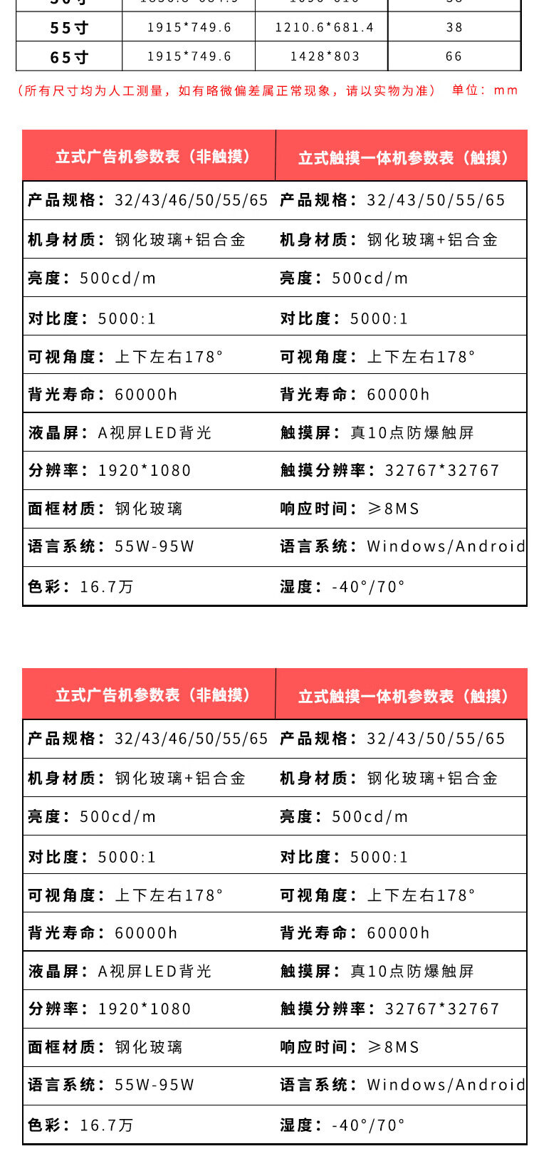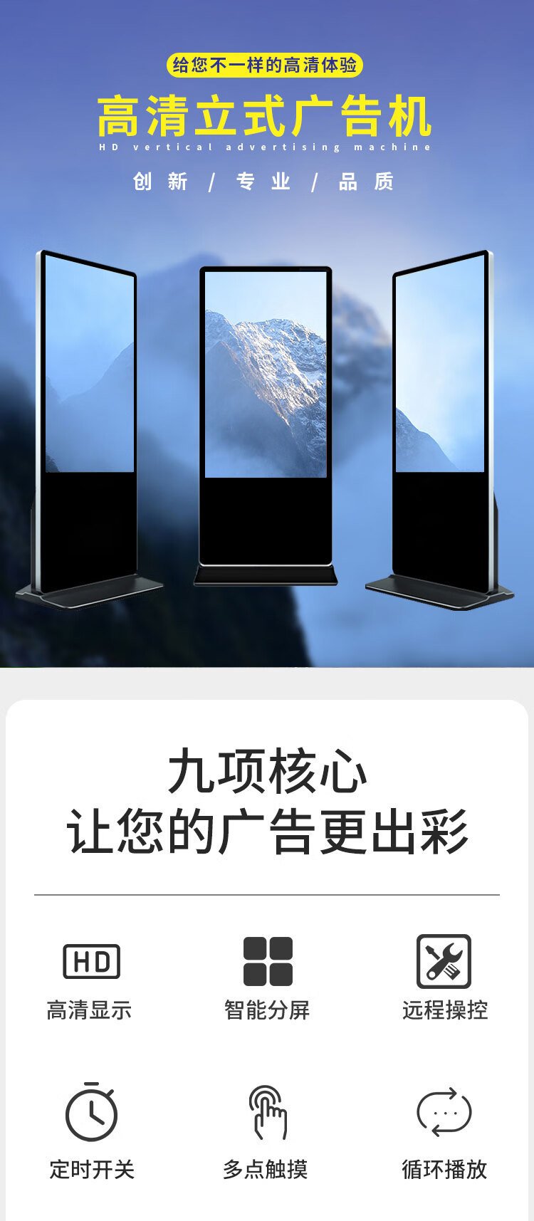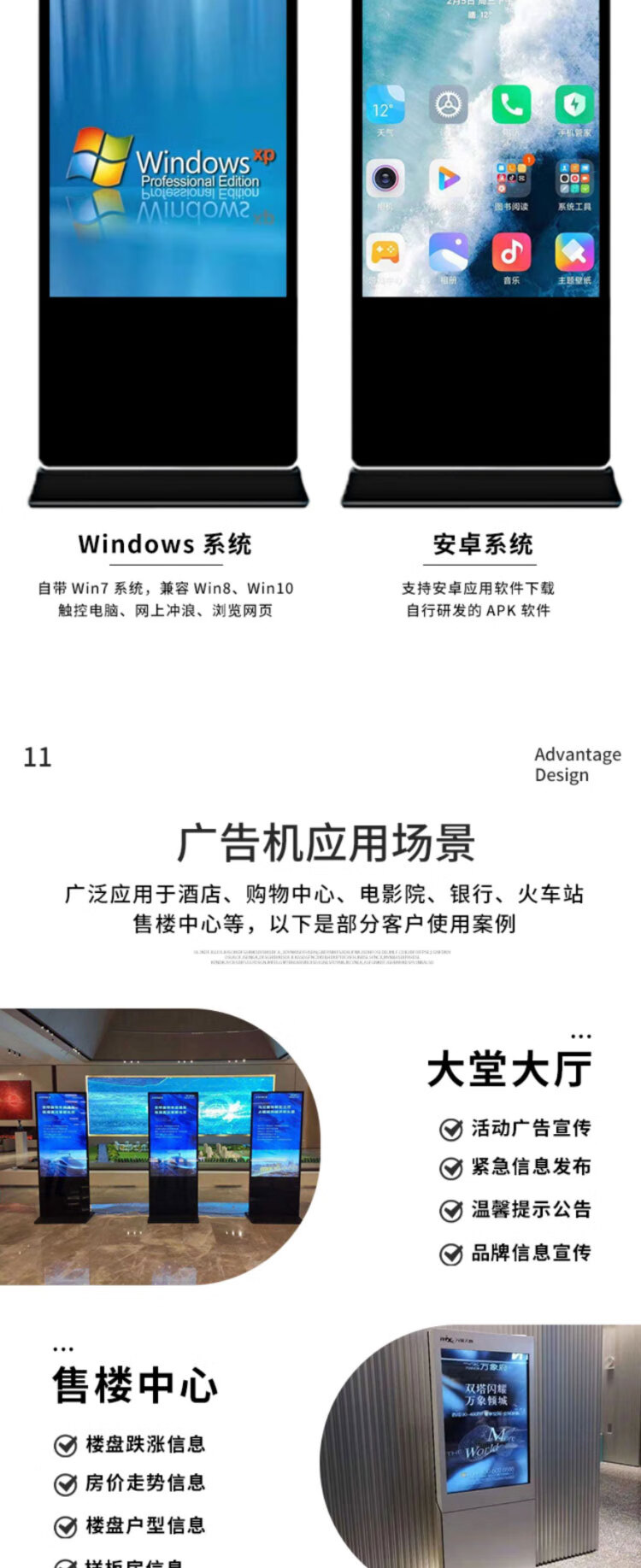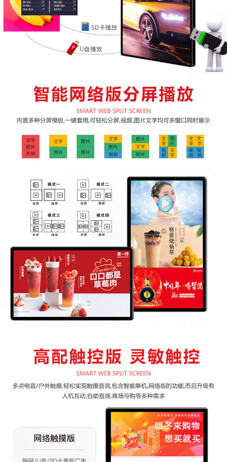 立式广告机触摸红外显示屏落地式播放器智能安卓网络信息查询发布宣传电脑商场商用液晶竖屏4K高清一体机黑色壁挂19寸单机版