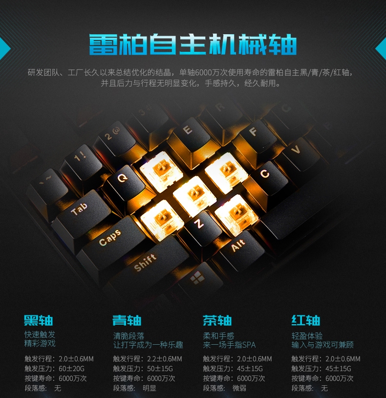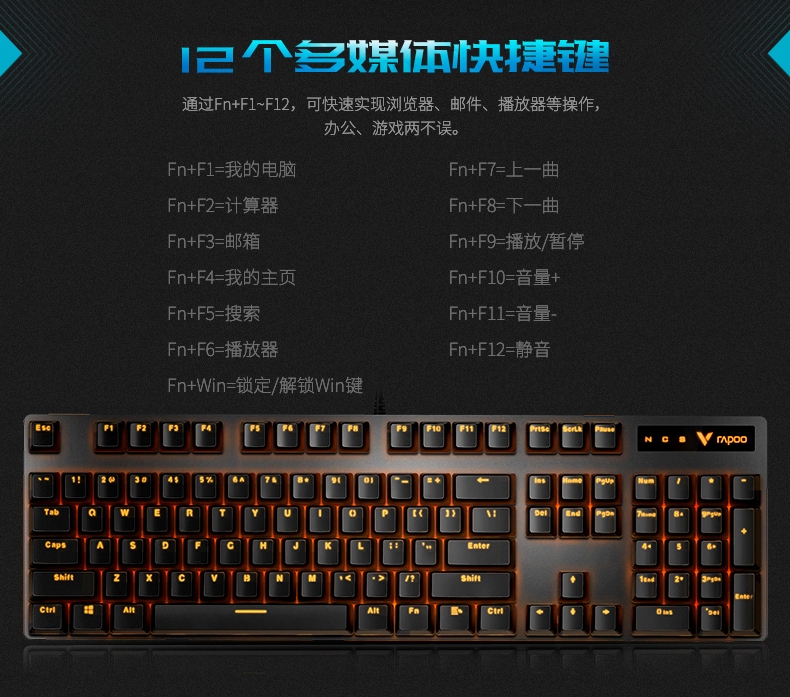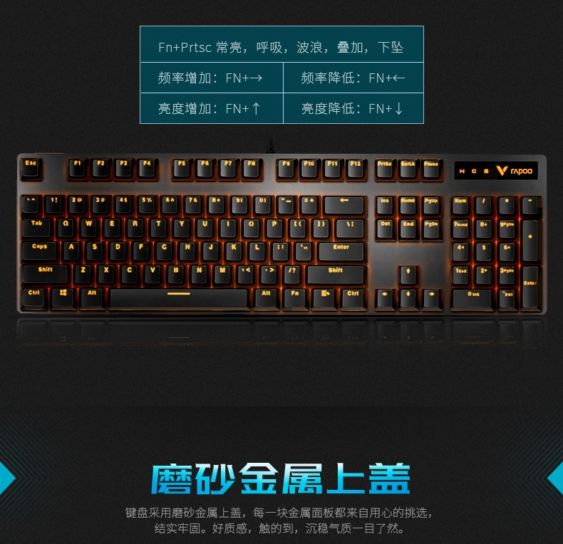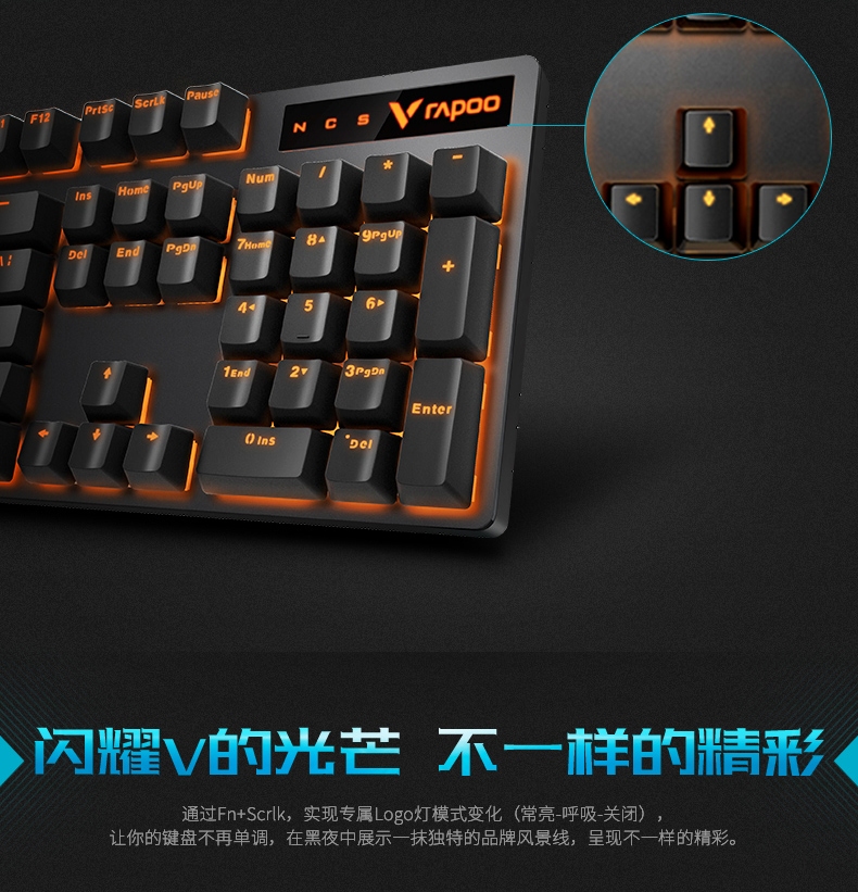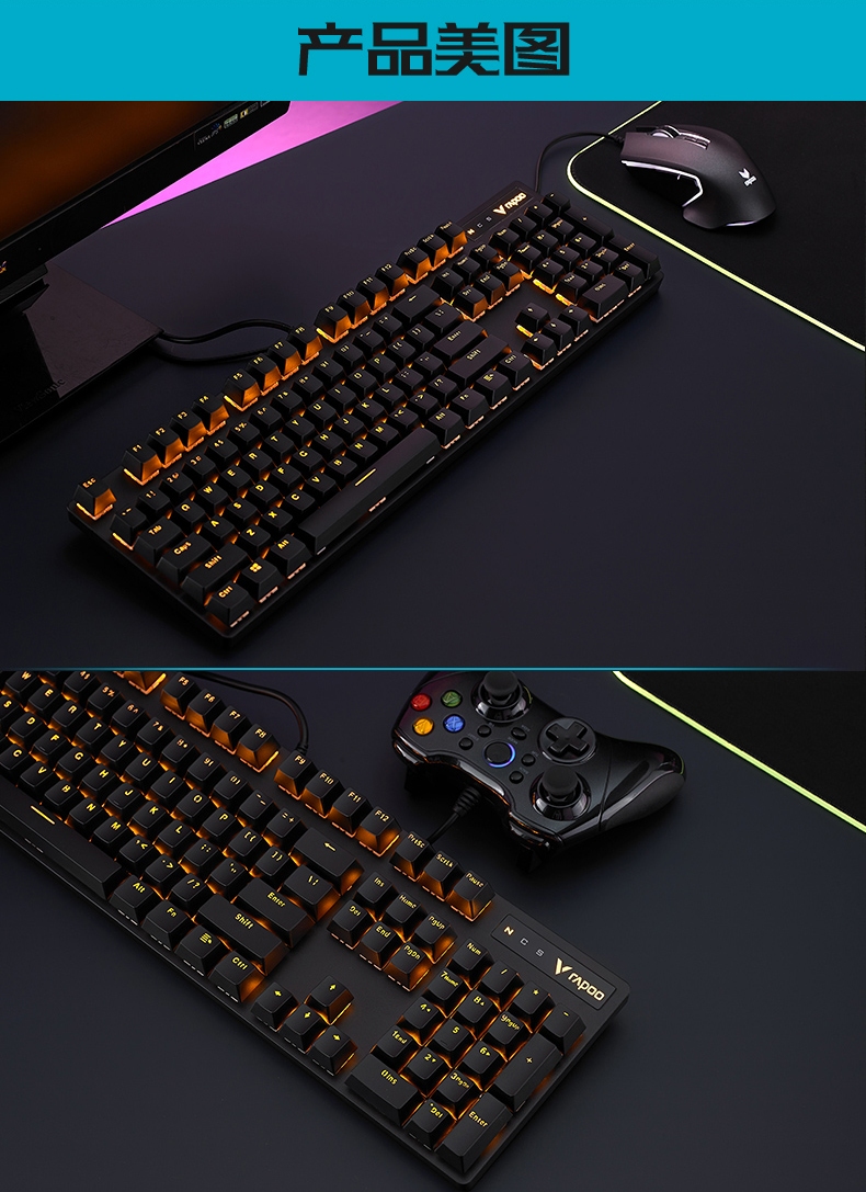 雷柏(Rapoo)V500PRO单光版有线背光机械键盘104键全尺寸游戏电竞笔记本电脑办公吃鸡全键无冲键盘茶轴