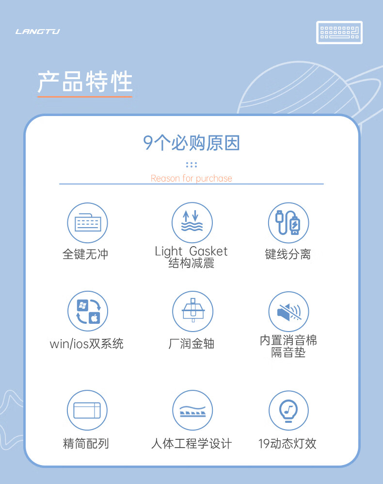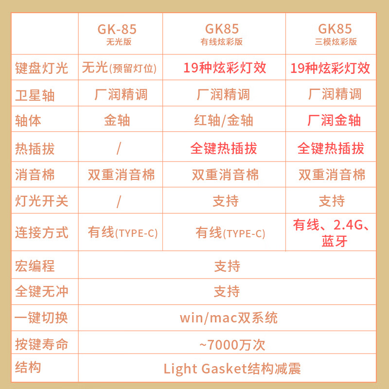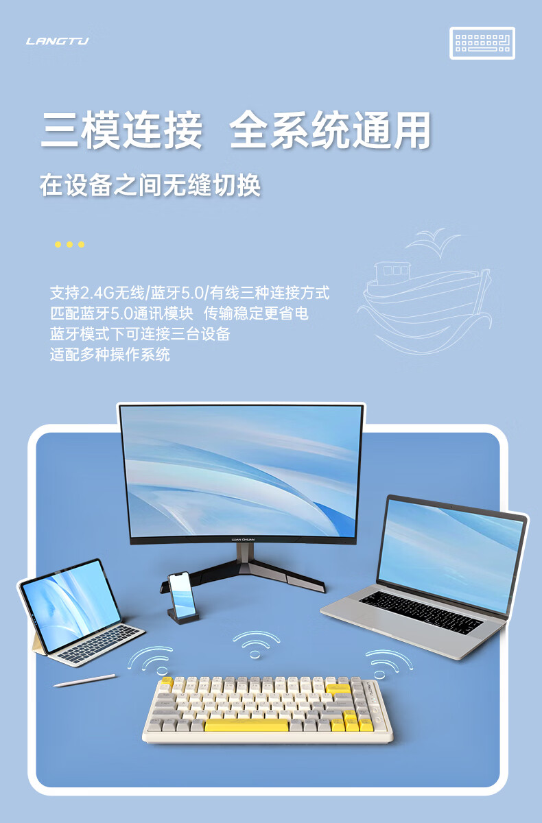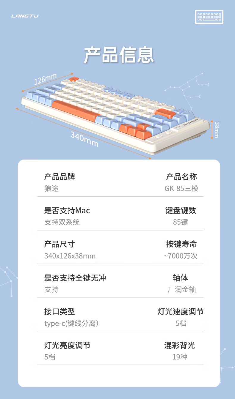 狼途(LANGTU)GK85星海三模热插拔游戏机械键盘有线无线蓝牙游戏办公键盘金轴