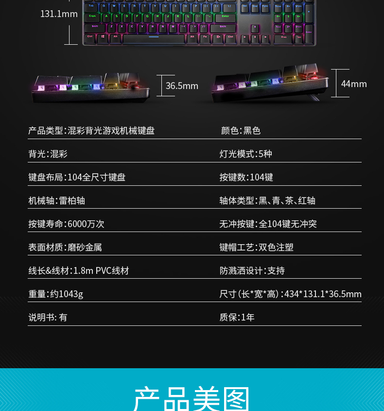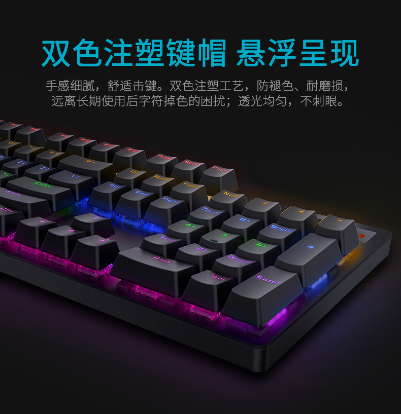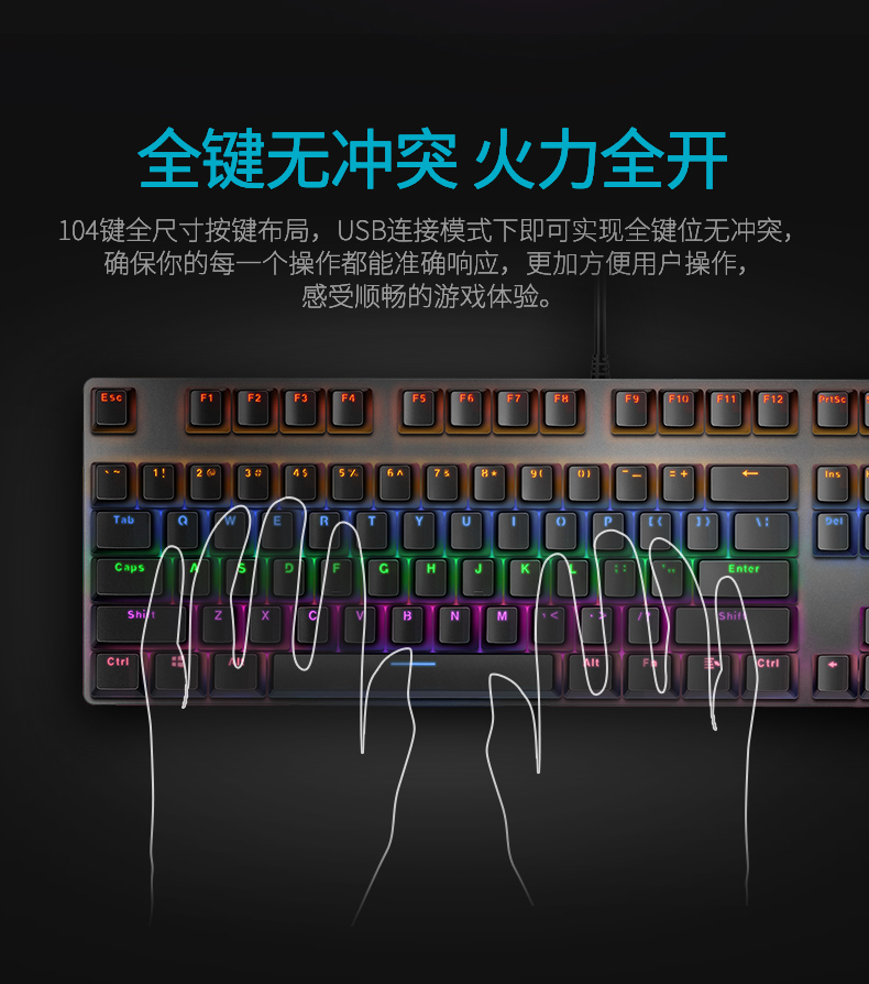 机械革命耀·K330机械键盘有线键盘游戏键盘金属面板104键混彩背光键盘全键无冲电脑键盘蓝白色青轴