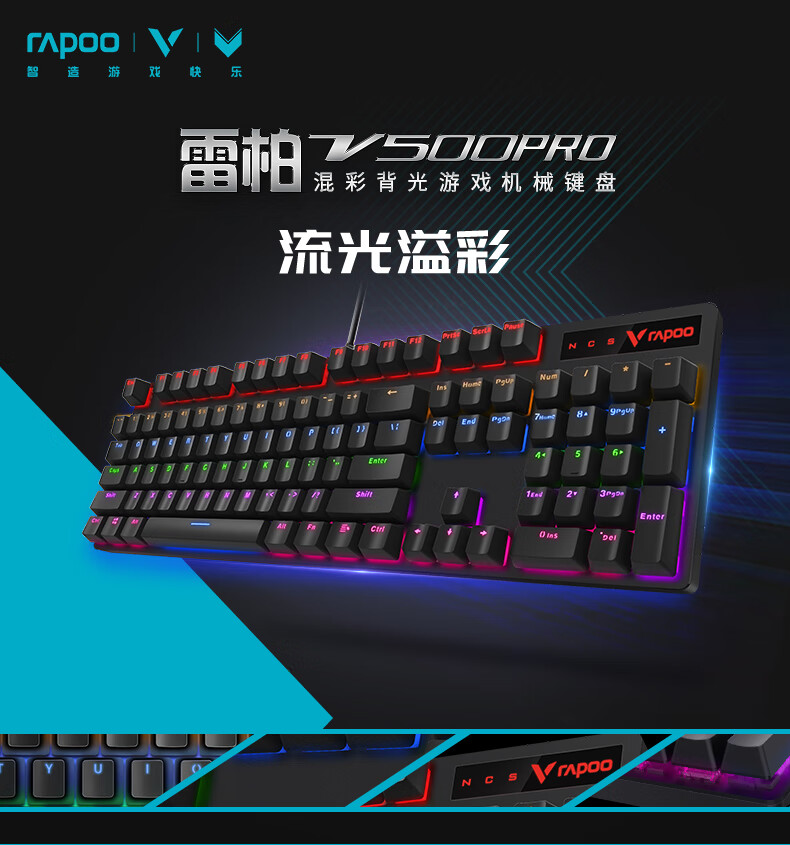 京品数码雷柏(Rapoo)V500PRO有线背光机械键盘104键全尺寸游戏电竞笔记本电脑多媒体办公吃鸡全键无冲键盘黑轴