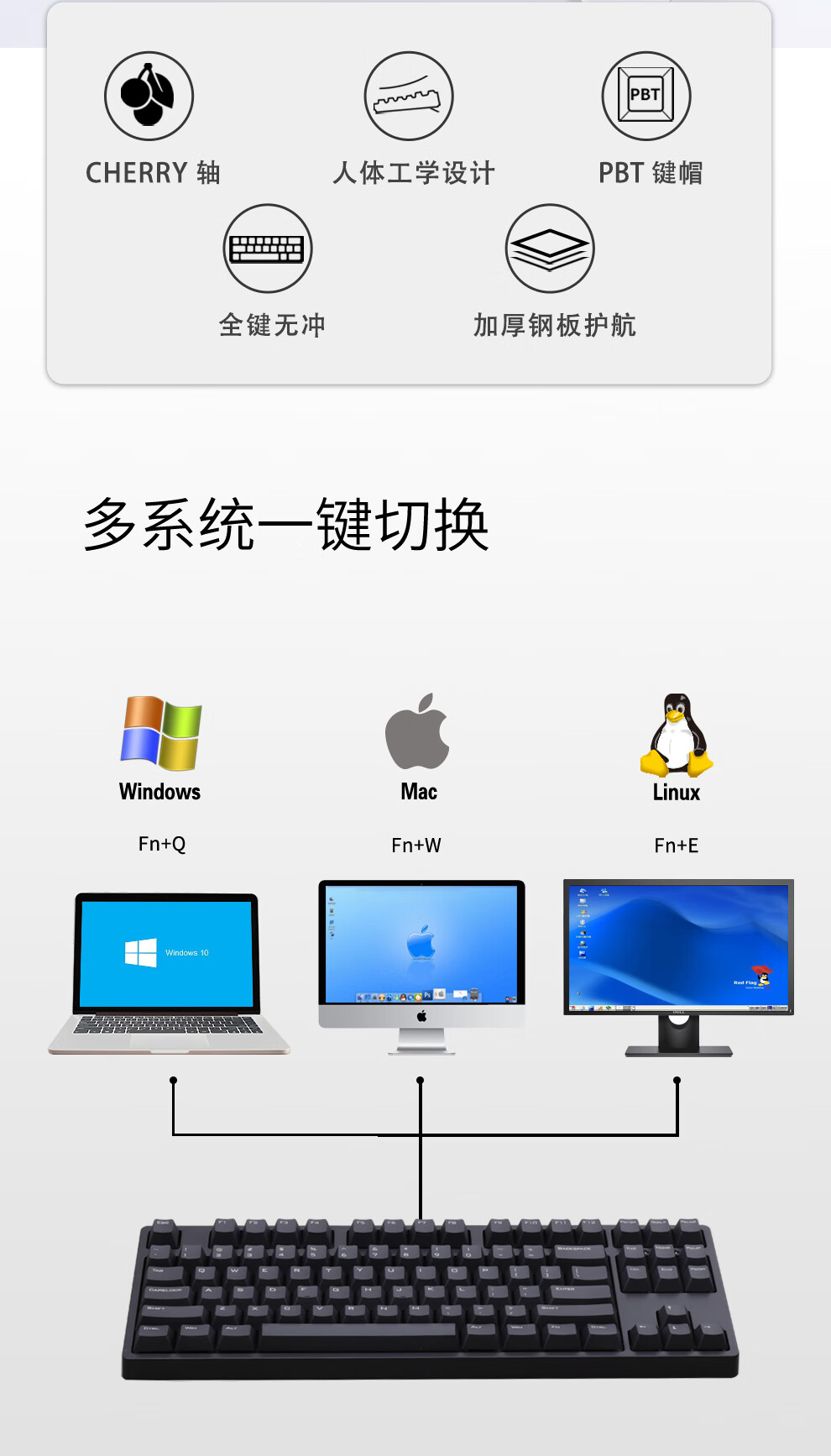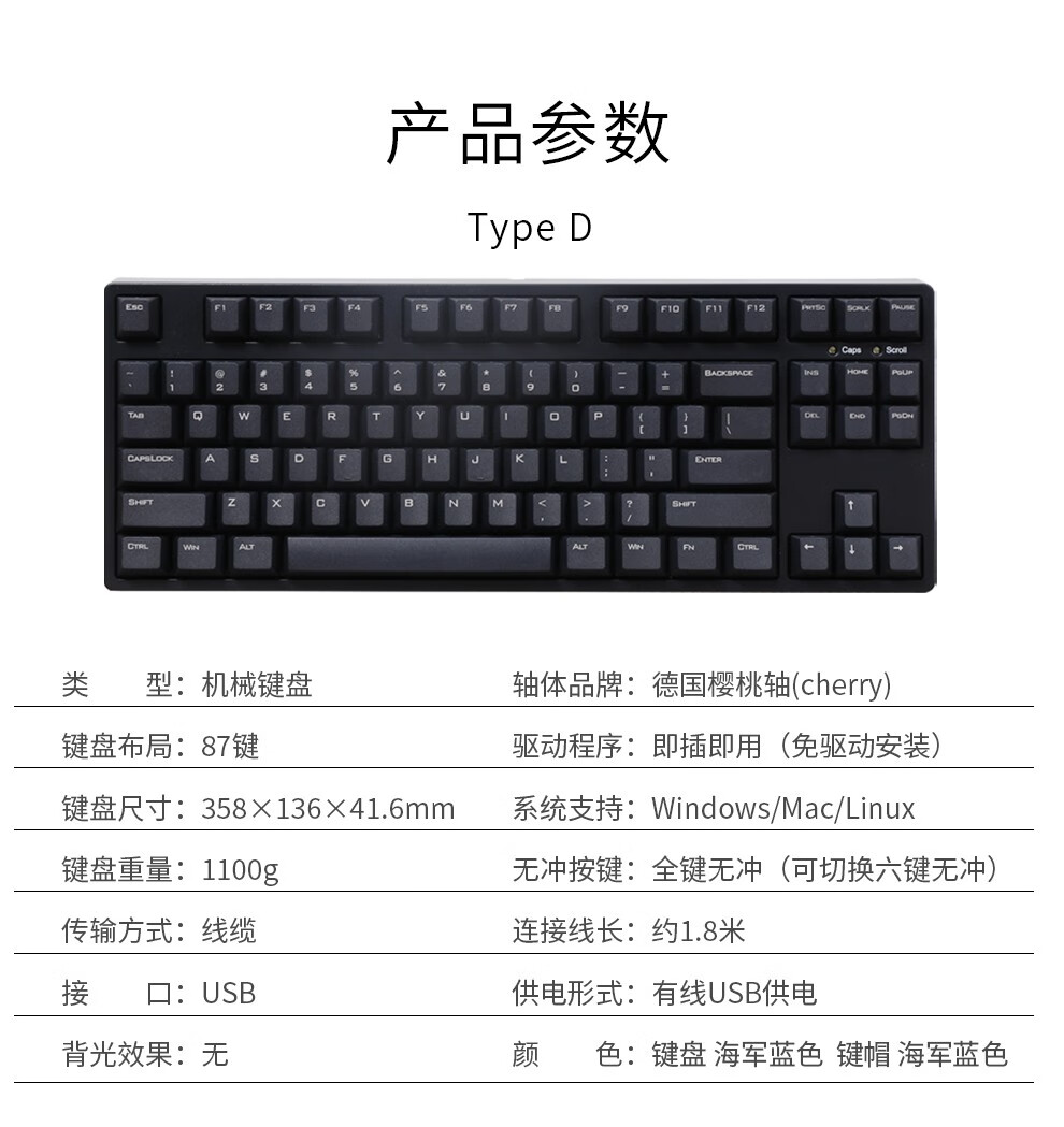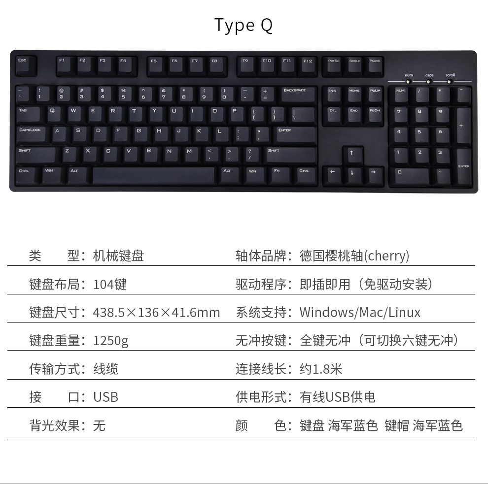 沃特概尔TypeD/Q87/104键机械键盘cherry樱桃轴游戏办公有线键盘TypeQ(经典104键)茶轴
