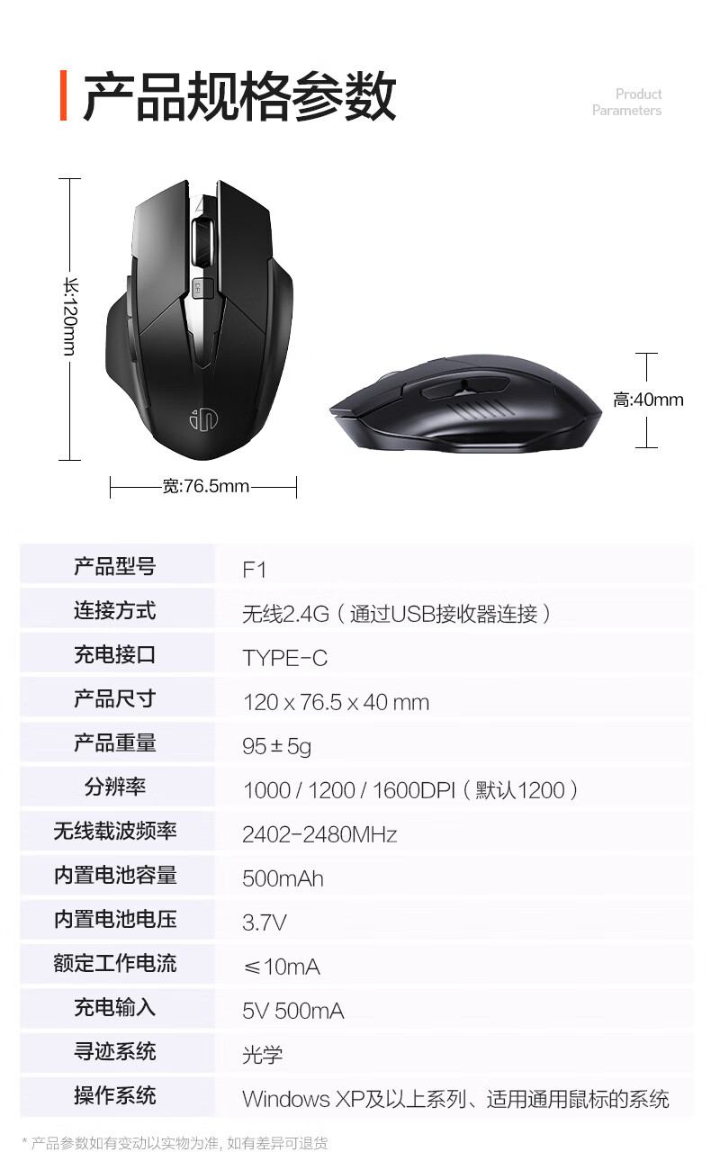 英菲克F1无线可充电鼠标
