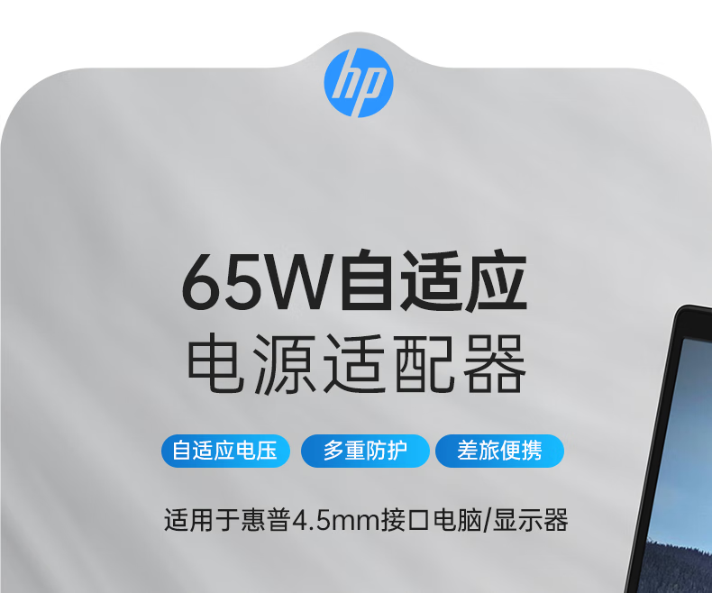 惠普(HP)65W电源适配器笔记本电脑充电器旅行便携式惠普笔记本充电线战66充电器星14/15/book系列
