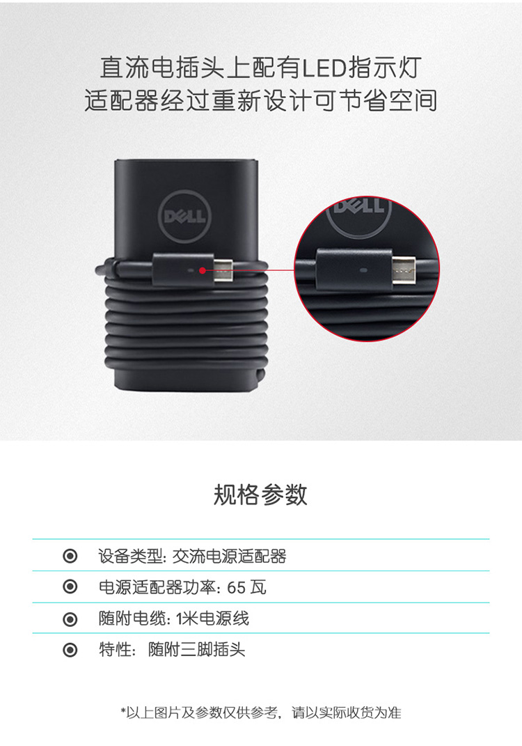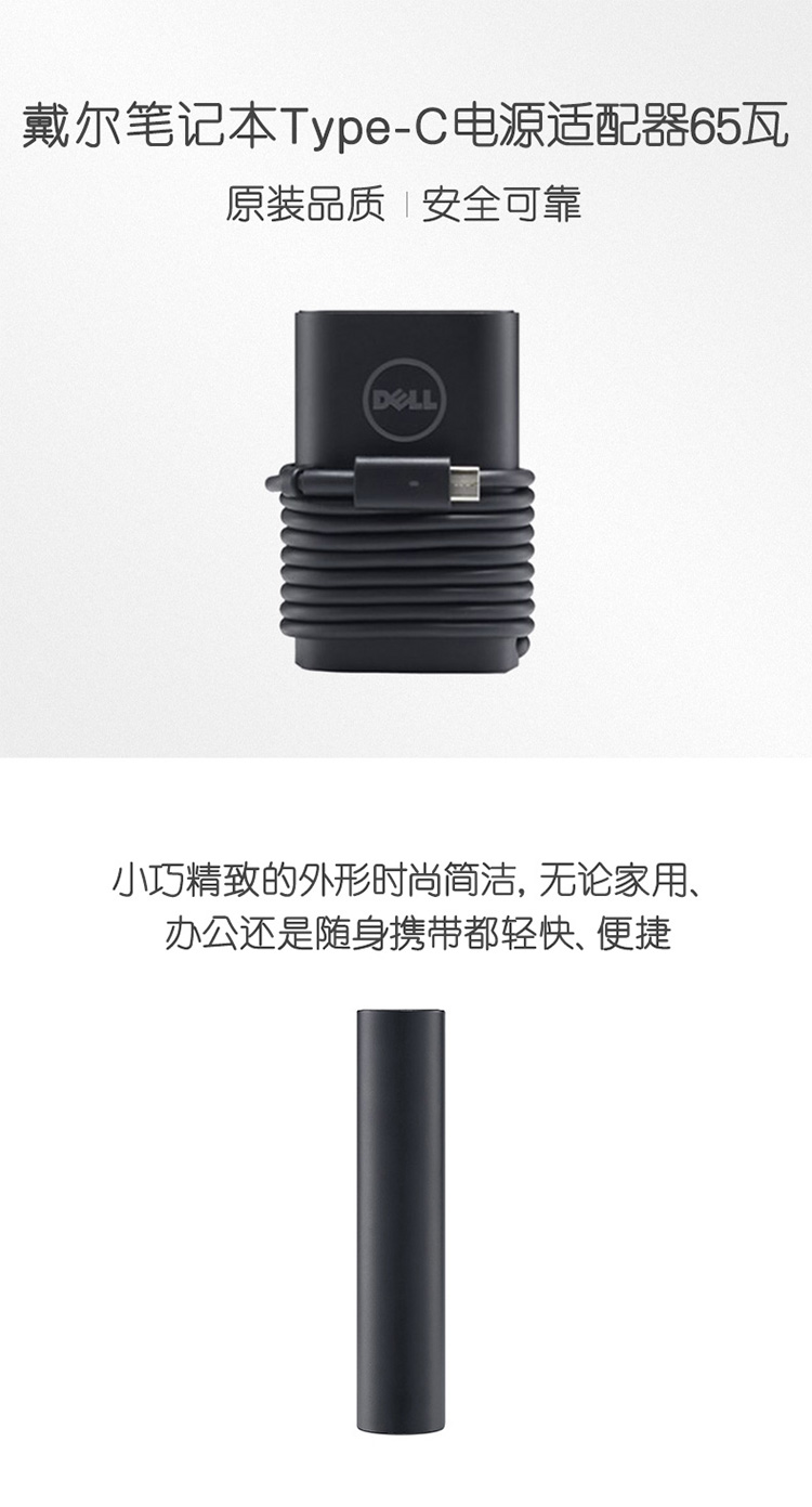 戴尔(DELL)XPS13-9305灵越14-7400笔记本电脑电源适配器充电线原厂配件65W-Type-C接口
