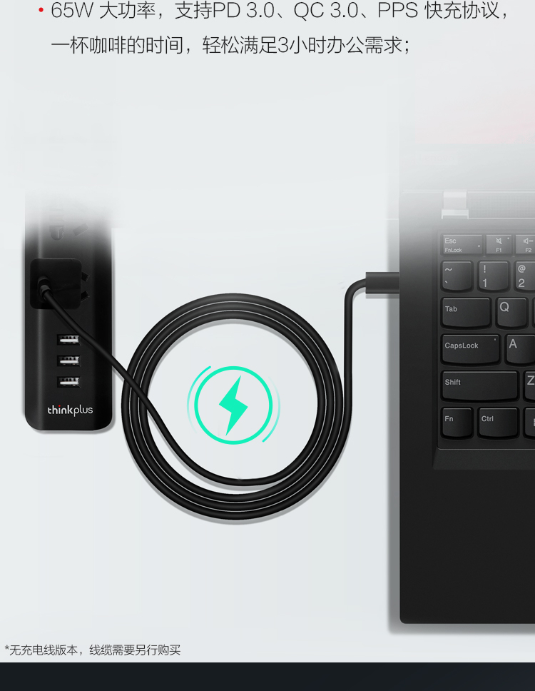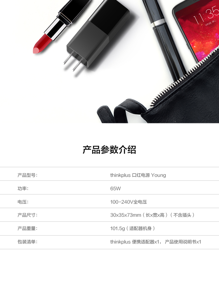 ThinkPad联想thinkplus口红电源65Wtype-c充电器,无充电线ThinkPad/联想笔记本电脑/手机/平板电源适配器